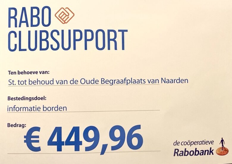 De Rabo Clubsupport heeft 450 euro opgeleverd. Daar zijn wij heel blij mee.